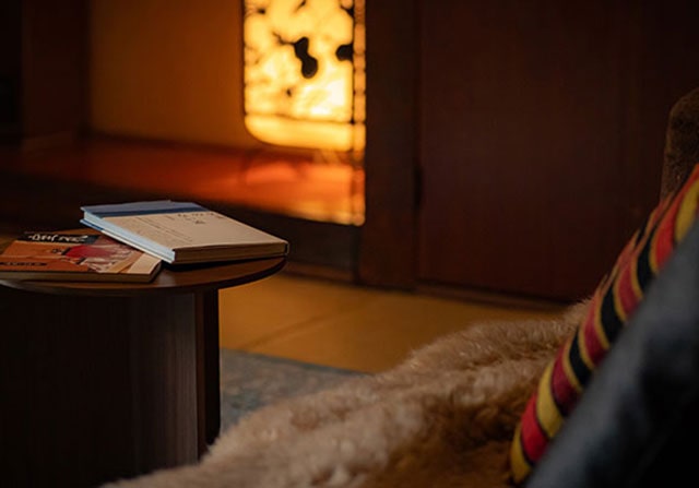 在青瓷色的温泉中休憩、治愈身心之后,在透过窗子欣赏到的高岗独有的宏大景色中享用晚餐,独享奢侈的时光。当明矾桥被夜幕笼罩后,静寂的时间缓慢的流淌,引诱着旅客进入深深的睡眠。