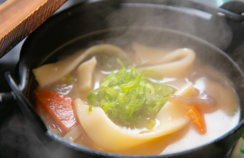 Dumpling soup is a local specialty in Oita. It’s a simple soup made by simmering chewy wheat-flour dumplings and plenty of vegetables in a miso broth. The umami of the broth soaks into the dumplings, and together with the vegetables' sweetness, the soup tastes subtly refreshing. Warm your stomach here- a touch of Oita awaits.