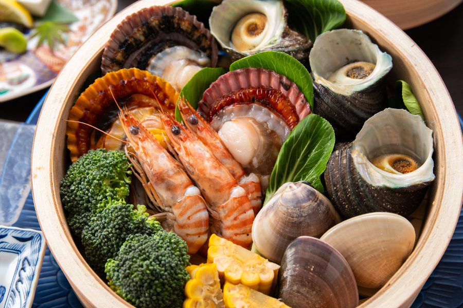 Enjoy fresh seafood from the Bungo Channel in the Jigoku Steam style. Discover the authentic taste of Oita here.