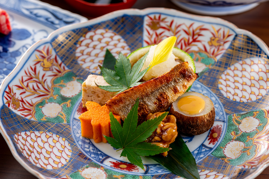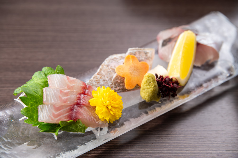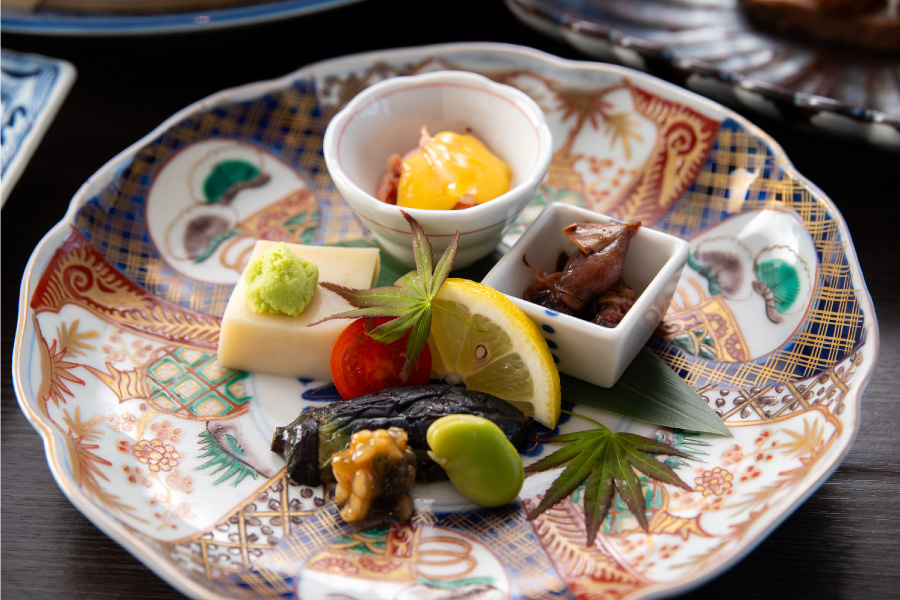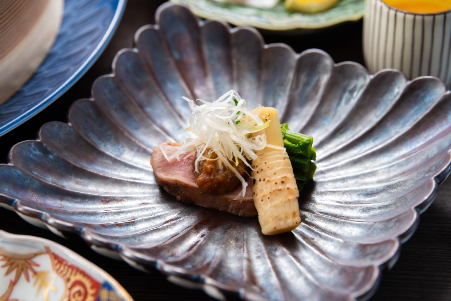 Seafood in the fast currents of the Bungo Channel is a representative bounty of Oita's seas, with firm flesh, refreshing flavor, and an optimal fat content. The wide variety includes Seki horse mackerel, Seki mackerel, grunt, amberjack, and yellowtail. Freshness is key for all fish, and we offer exceptional aroma, texture, and flavor in local production and consumption. In our kaiseki courses, we serve foods harvested at a particular time of year when growing conditions are ideal.