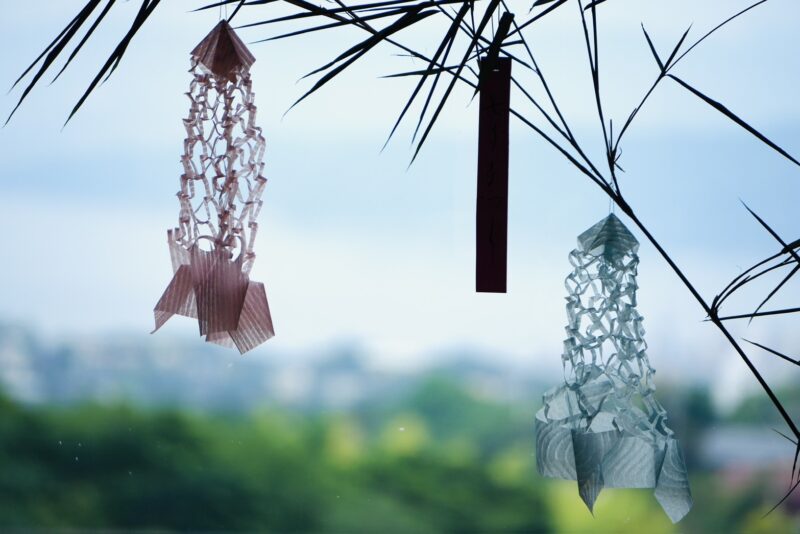 七夕は、「星祭り」とも呼ばれ、毎年7月7日に行われる日本の伝統的な年中行事のひとつです。中国から伝わった「乞巧奠(きこうでん)」という行事が、日本古来の 棚機(たなばた)信仰と結びつき、「たなばた」と読むようになったとされています。
