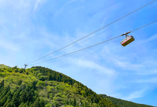標高500mから1,300mへと繋がる約10分間の空中散歩。眼下に広がる別府の街並みと別府湾を眺めながら、山頂へ。阿蘇くじゅう国立公園内に位置する 展望所からは、くじゅう連山、由布岳、別府湾が織りなす360度のパノラマビューが広がります。
